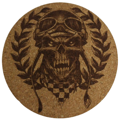 💀Een robuuste kurken onderzetter met een indrukwekkende gravure van een Skull Biker. Stoer en stijlvol, ideaal voor motorliefhebbers die hun passie willen laten zien