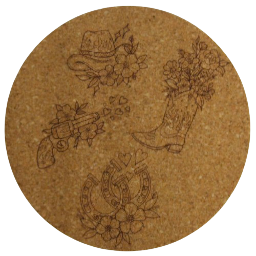 👢Onze kurken onderzetters met Country & Western fine line designs zijn een charmante toevoeging aan elke tafel! Denk aan cowboyhoed, hoefijzers, cactussen en boots allemaal met zorg gegraveerd. Perfect om je meubels te beschermen terwijl je een vleugje speelse prairie-sfeer toevoegt. Een leuk cadeau of een warme aanvulling voor je eigen interieur!